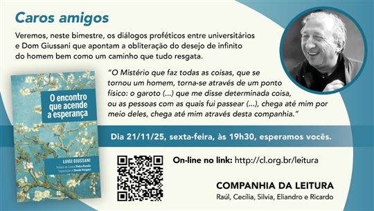 Todo bimestre, uma boa conversa para ampliar o que conhecemos e pensamos a partir da literaturaPara o bimestre novembro/dezembro de 2025, propusemos a leitura do livro O encontro que acende a esperança, de Luigi Giussani.