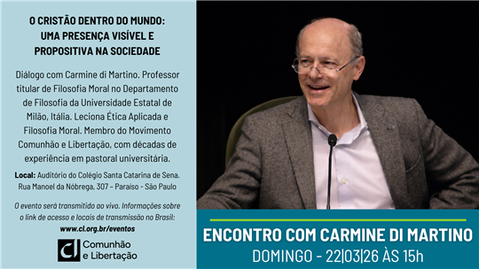 Encontro com o professor italiano Carmine di Martino. Dia 22 de março, às 15h, em São Paulo. Aqui as informações de transmissão para cada cidadeData: Domingo, 22 de março de 2026, às 15h